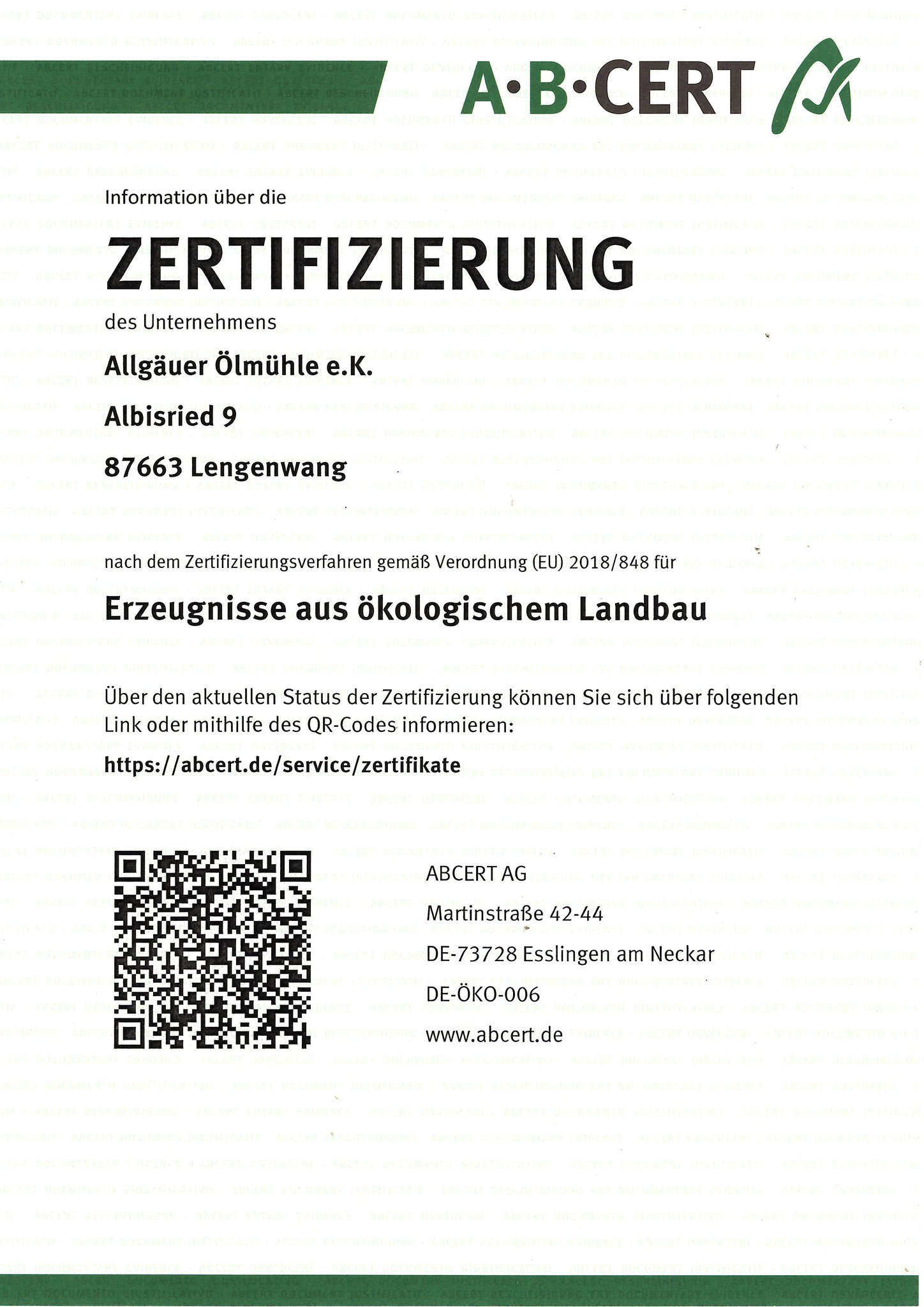 Demeter Zertifikat Allgäuer Ölmühle bis